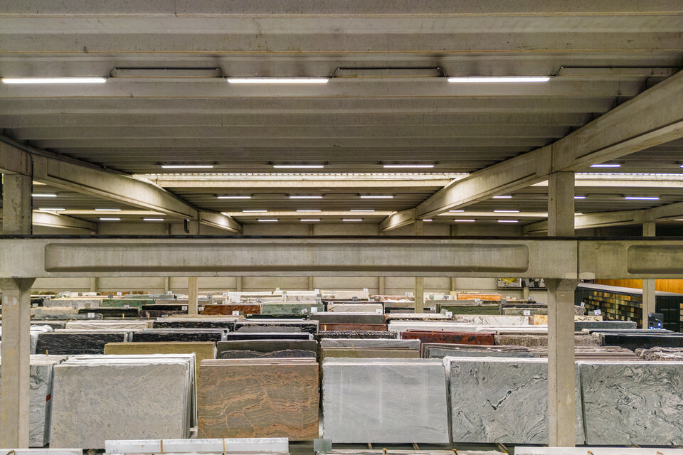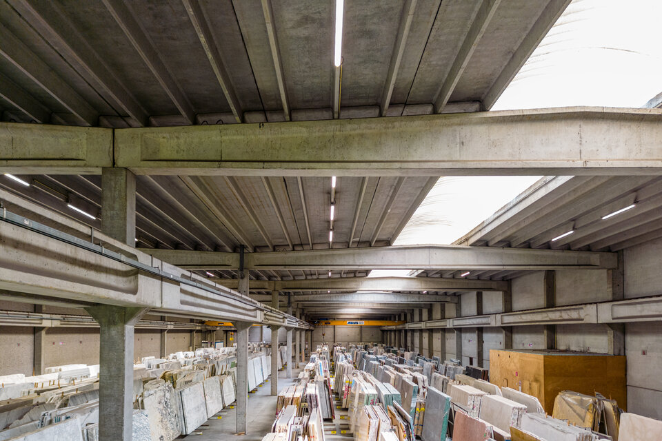 BMB Natuursteen, en belgisk virksomhed med 50+ års erfaring i specialdesignede naturstensprojekter, havde brug for en ny belysningsløsning til deres showroom, lager og produktionshal. De sigtede mod forbedret energieffektivitet, forbedret lyskvalitet, reducerede vedligeholdelsesomkostninger og længere produktlevetid.