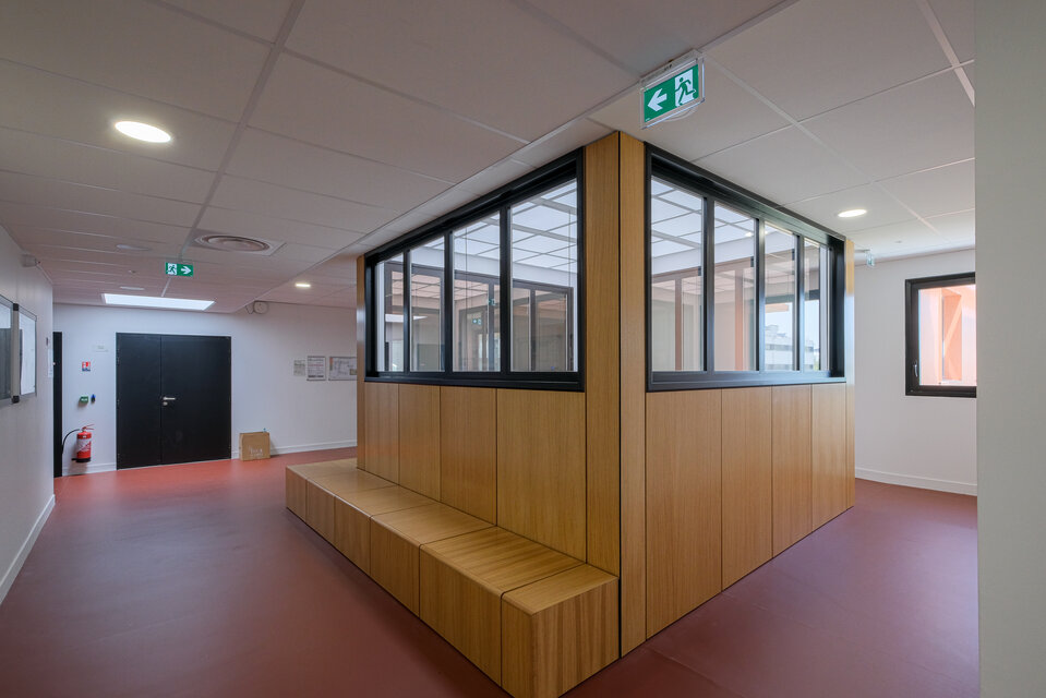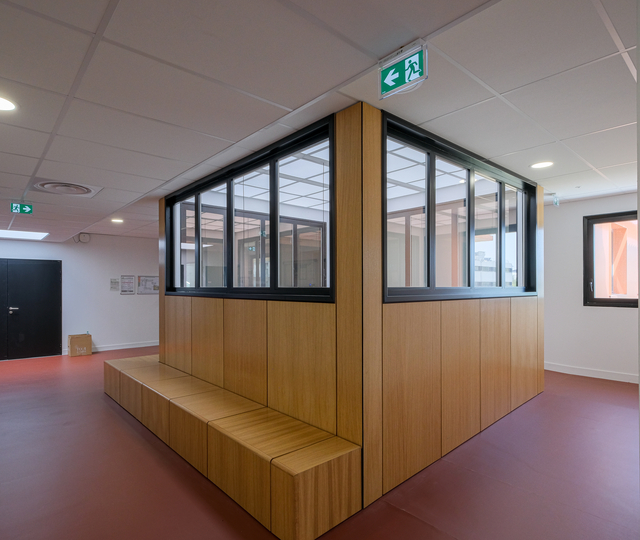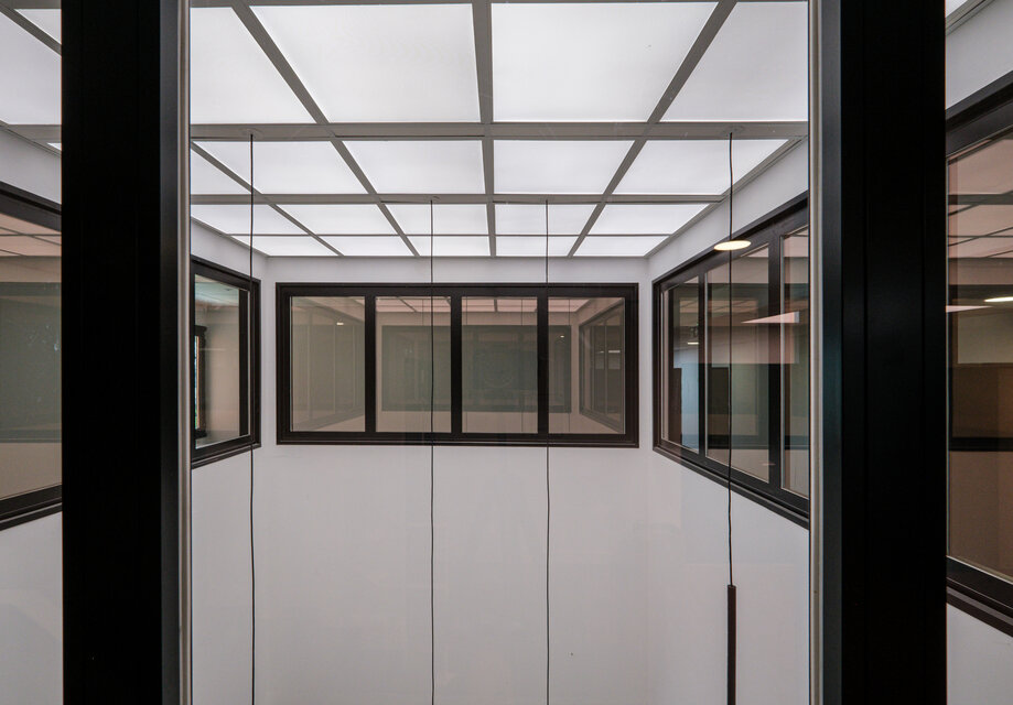 Dette lysstyringssystem giver mening i denne kantine. Relax-funktionen er særligt velegnet til dette rum, som er oplagt til afslapning. Den automatiske dynamiske tilpasning af det kunstige lys i løbet af dagen i overensstemmelse med den naturlige lyskurve forbedrer velværet betydeligt, især om vinteren, når dagene er mørkere. Systemet er værdsat og anvendes.