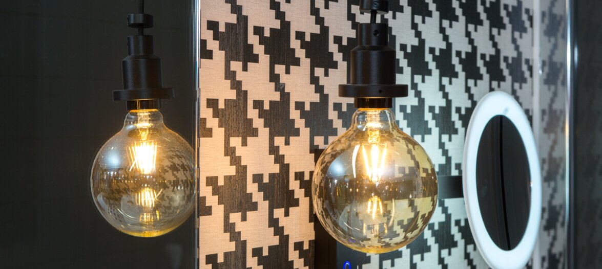 Belysningen er meget harmonisk integreret med indretningen, da både lyskilder og armaturer såvel som selve lyset bruges som designelementer. Mens designer-armaturer i suiternes stue og soveværelse supplerer den høje kvalitetsindretning, giver Globe-lyskilder fra LED Vintage 1906-serien stilfuld effektbelysning ved spejlbelysningen i badeværelset, og LED-filament-lyskilderne i PenduLum Pro-lamperne giver et rigtigt godt retro-blikfang. Det er tydeligt, at belysningseffekten fra LEDVANCE LED-spots, som blev installeret i indgangsområdet, badeværelset og tekøkkenet, er i fokus. Den varme hvide effektbelysning sætter effektivt fokus på det moderne interiør. Hyggebelysningen i soveværelset og opholdsstuen, der er udført med fleksible OSRAM LED-moduler, understreger atmosfæren i suiterne med sit behagelige indirekte lys.