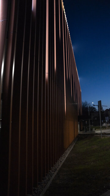 Valget af effektive, forseglede LED-bånd og drivere med 5 års garanti sikrer, at facaden bevarer sit moderne udtryk i mange år frem. Det er særligt vigtigt for dyre projekter, der er finansieret med offentlige midler.
