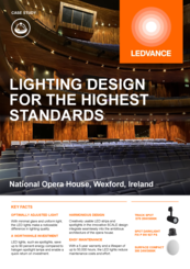 LEDVANCE moderniserer belysningen i National Opera House i Wexford, Irland, ved at opgradere belysningen i foyeren, baren, auditoriet, korridorerne og trappeopgangene med LED-bånd og et udvalg af tracklights, spotlights og vægmonteret belysninglys. Den nye belysning øger kvaliteten, reducerer energiomkostningerne og sænker vedligeholdelsesindsatsen, samtidig med at den problemfrit integreres i bygningens arkitektur.
