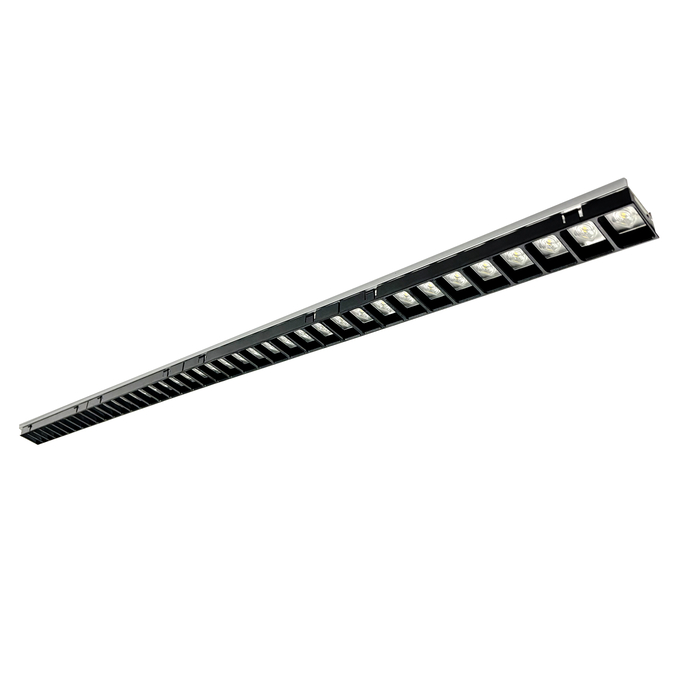 Påbygningsarmatur til kontoret monteret enten enkeltvis eller i lysrækker med CRI90, DALI-2 IoT-teknologi og asymmetrisk lysfordeling, 1200 mm