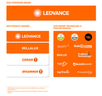 LEDVANCE er et af verdens førende virksomheder i belysningsbranchen, som nu er ved at ekspandere til nye markeder inden for løsninger med vedvarende energi. For at afspejle vores brede udvalg af produkter og løsninger tilbyder vi en række forskellige brands under vores virksomhedsstruktur LEDVANCE. Under varemærket LEDVANCE sælger vi et omfattende sortiment af produkter til bolig, erhverv og industri. Efter aftale med OSRAM sælger vi også et stort udvalg af produkter under varemærkerne OSRAM og SYLVANIA. Derudover har vi et væld af brands til vores egne teknologier og funktionaliteter, såsom lysstyringssystemet VIVARES, opladningsinfrastrukturen PHASE EV™ samt Human Centric Lighting-systemet BIOLUX.