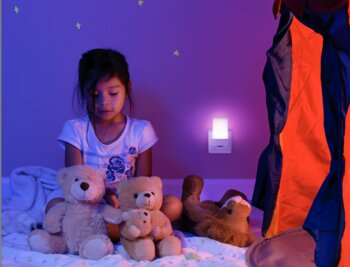 Important: a night light should not stop your little ones from falling asleep, so choose dark colours like warm red or harmonious green. Also, ensure sockets near the bedside table are child-proof.