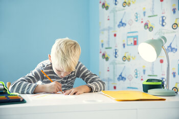 The ceiling lamp in a child’s room can be quite colourful and imaginatively designed. Then add several spotlights, which you should align with the most important points in the room – for example, the desk, the painting easel or the play area with a tent or a doll’s house. Alternatively, use a colourful hanging lamp in the nursery: toddlers particularly like playful designs such as animals, stars or dots on the lampshade. As far as possible, the ceiling lamp should illuminate the whole room evenly and glare-free.