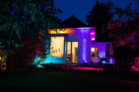 Plus, smart lighting doesn't just have to be in your living room or bedroom. It also looks great in the garden, where it not only looks good, but thanks to the remote control, you can turn it off in the winter in peace and warmth without freezing in the garden.