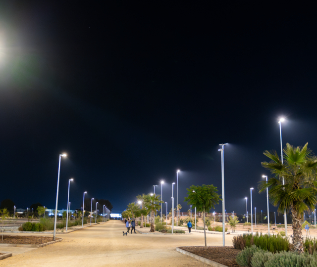 Avec le Parc de la Antena, la municipalité de Torres de Cotillas a créé le plus grand parc urbain de la région de Murcie avec une superficie de 280 000 m2 et en même temps un espace public qui permet une vie urbaine active dans un environnement aussi proche de la nature et durable que possible. Dans cette optique, la mairie de Torres de Cotillas recherchait une solution d'éclairage pour le parc qui fournirait un éclairage efficace, durable et puissant, conforme aux objectifs de durabilité de l'Agenda 2030, auxquels la municipalité s'est engagée.