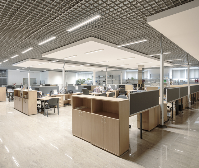 Furthermore, Onninen had to face a challenge regarding the installation of the lighting solution: The ceiling surface in the premises is made of two types of material - plasterboard panels and decorative aluminium grates. Therefore, two different installation methods for luminaires were needed- surface mounted and suspended. Finally, the project had to be cost-efficient.