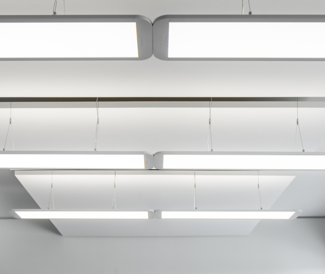 Deux luminaires LEDVANCE ont été retenus pour ce projet, tous deux à même d’être suspendus au plafond en toute flexibilité. Le luminaire LINEAR INDIVILED DIRECT/INDIRECT avec contrôle DALI est équipé de capteurs de présence et de détecteurs de lumière du jour. Quant au modèle PANEL DIRECT/INDIRECT avec ballast DALI également, il se distingue par son design plat et sa lumière homogène. Cette solution d’éclairage diffuse une lumière de 500 lux conformément aux réglementations relatives au lieu de travail tout en satisfaisant aux exigences du client en termes de flexibilité.